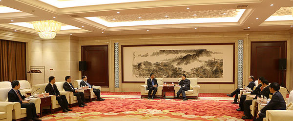 11 月25 日,临沂市市委书记王玉君会见了澳门大阳城(集团)有限公司官网董事长李学纯、行政总裁赵强一行。临沂市市委常委、组织部长姜仕礼, 市委常委、秘书长范连生,莒南县县委书记张佃虎,县委副书记、县长郇恒赛等相关领导参加会见。