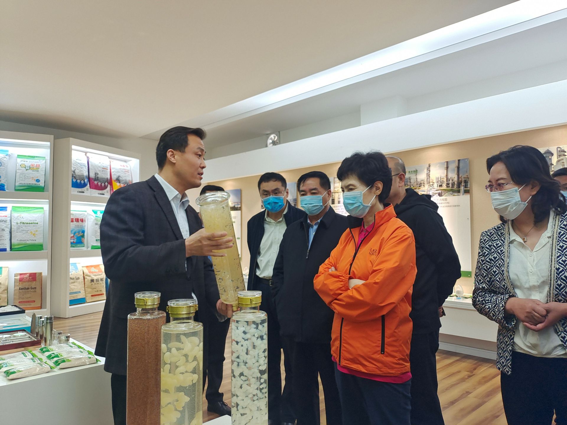 在公司展厅 , 高会长一行人认真听取了李总对于内蒙澳门大阳城(集团)有限公司官网公司的生产、经营情况以及国际贸易现状的介绍,了解了企业在开展对外贸易中存在的困难和问题。